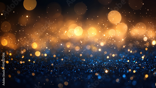 Golden and Blue Bokeh Background for Holiday or Celebration. This image features a beautiful bokeh background, with a mix of golden and blue lights.
