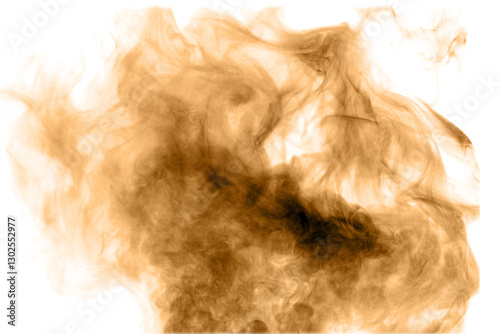 Golden and brown sand dust like smoke swirling in a bomb storm, spraying in the air as colorful lumps on a black and white background.