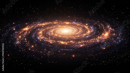 Golden and violet spiral galaxy in deep black void