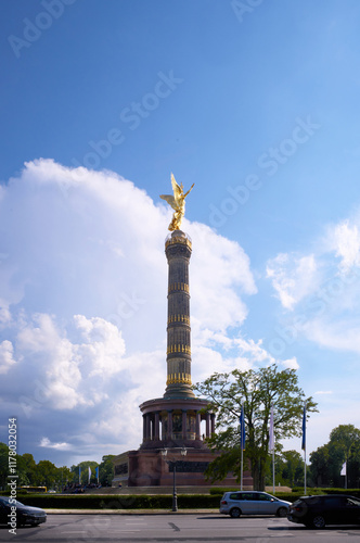 Golden angel atop Berlin's Victory Column against a vibrant sky