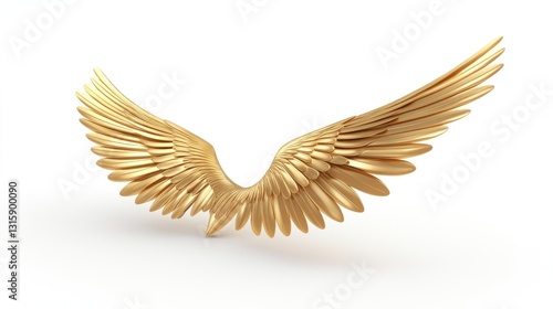 Golden angel wings, isolated on white background, 3D render, decorative element, graphic design