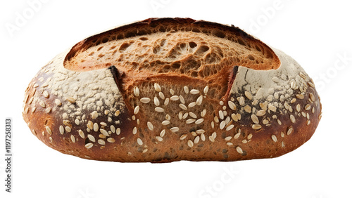 Golden Artisan Sourdough Bread with Sesame Seeds and Rustic Crust, isolated on transparent background.