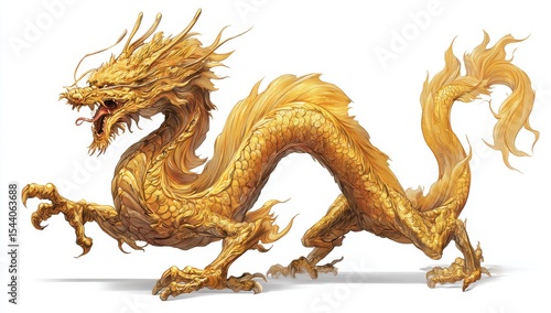 Golden Asian Dragon Illustration Majestic Mythical Creature Symbolizing Power, Prosperity, and Good Fortune in Vibrant Gold Art