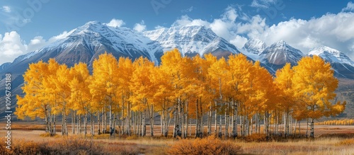 Golden Aspen Trees Against a Snowy Mountain Range