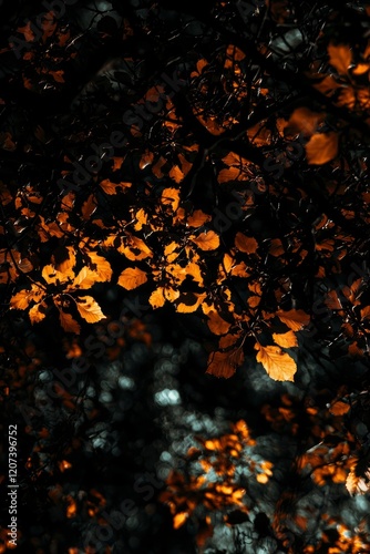 Golden Autumn Leaves Illuminating Dark Branches