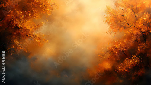 Golden Autumn Leaves with Misty Background, Nature Photography