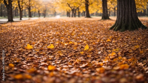 Golden Autumn Path: A captivating view of a pathway lined with vibrant golden leaves, bathed in warm sunlight. The image evokes a sense of tranquility and autumnal beauty, perfect for nature and seaso