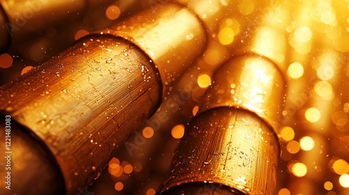 Golden Bamboo, Dewdrops, Festive Lights, Closeup, Asian