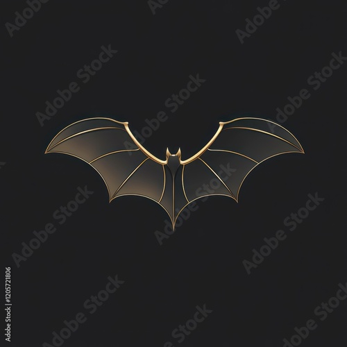 Golden bat silhouette, dark background, Halloween design, graphic art
