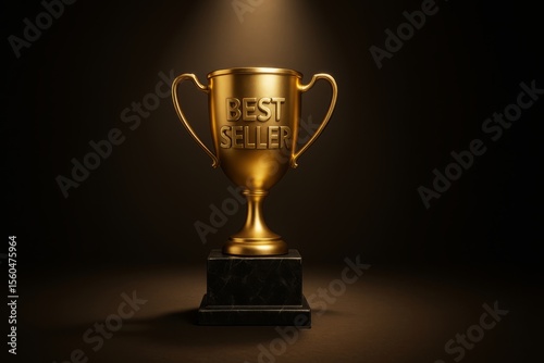 Golden Best Seller Award Trophy on Dark Background Achievement Success Business Concept
