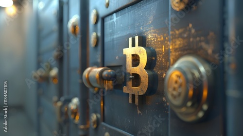 Golden Bitcoin Symbol on Vintage Vault Door with Locks and Latch
