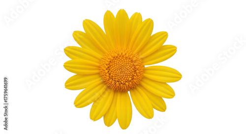Golden Bloom: A close-up view of a vibrant yellow daisy, its petals radiating outwards from a warm, golden center, evoking feelings of freshness and vitality.