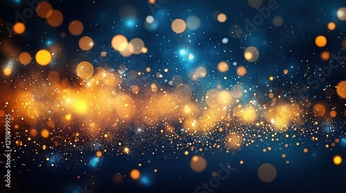 Golden Blue Sparkling Lights Dreamy Bokeh Effect Abstract Background for Celebration and Event Design