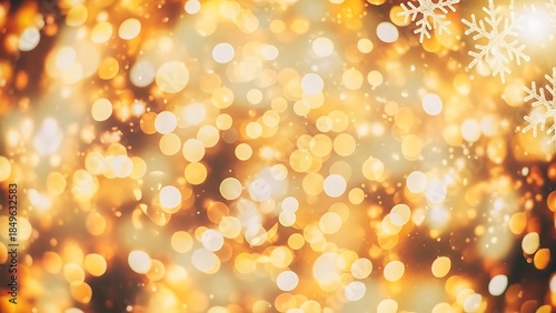 Golden Bokeh Lights with Snowflakes on Dark Background