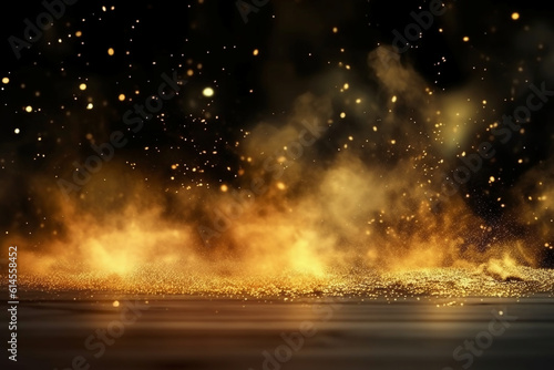 Golden bokeh particle lights and golden smoke effects. AI generative