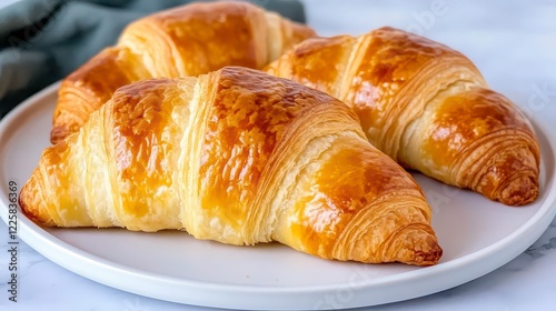 Golden Brown Croissants on a Plate A Delightful Bakery Treat