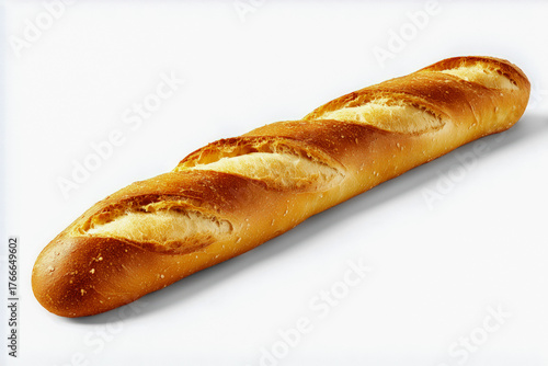 Golden brown, freshly baked artisan baguette with a crisp crust and soft interior, perfect for any culinary creation or delicious meal.