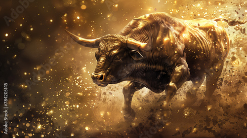 Golden Bull Statue with Sparkles Symbolizing Financial Market Strength