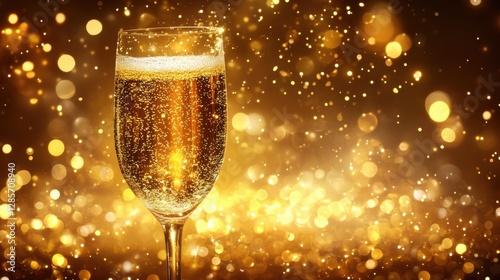 Golden Champagne Bubbles in a Glass Against a Sparkling Background