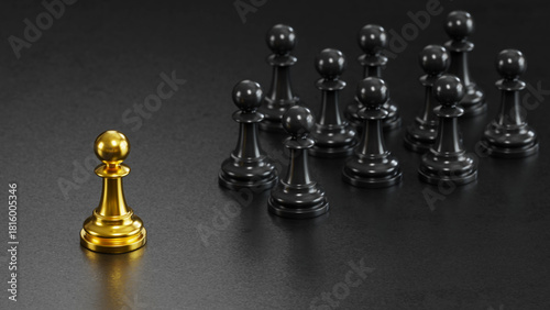 Golden Chess Leads Black Pawns: Embodying Versatile Power & Strategic Victory