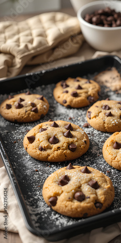 Golden Chocolate Chip Cookies on Rustic Baking Tray