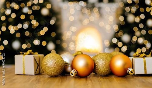 Golden Christmas Balls Adorn Tree Decorations in Festive