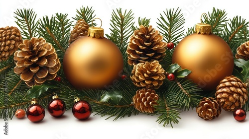 Golden Christmas Ornament and Pine Cone Festive Decoration