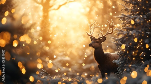 golden christmas tree and deer