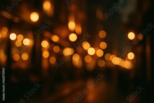 Golden city lights bokeh with warm ambiance creating urban nightlife atmosphere for hospitality and entertainment venue marketing campaigns