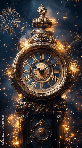 Golden clock midnight rings for party high resolution image