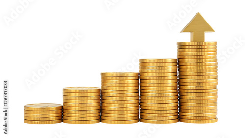 Golden coins stacked beside a financial graph illustrate wealth growth