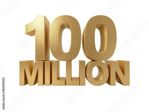 Golden commemorative rendering of one hundred million isolated on transparent background for success