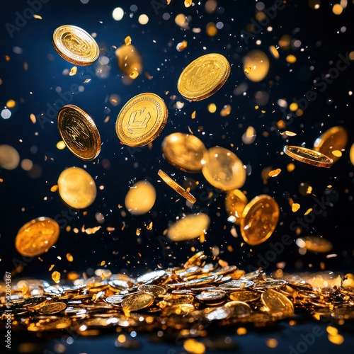 Golden Confetti Crackers and Rain of Coins for Celebrations and Decorations