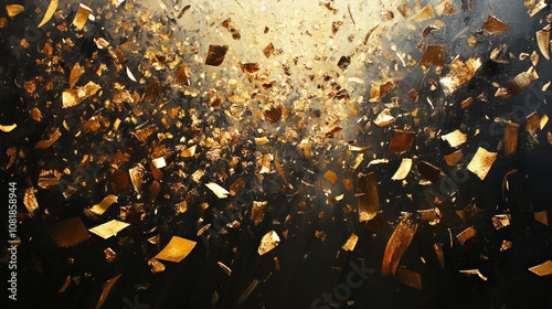 golden confetti new year background featuring sparkling glitter particles and festive celebration elements, perfect for holiday party themes, event invitations, and joyful seasonal designs