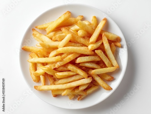 Golden, crispy french fries piled high on a white plate, ready to be enjoyed as a tasty snack.