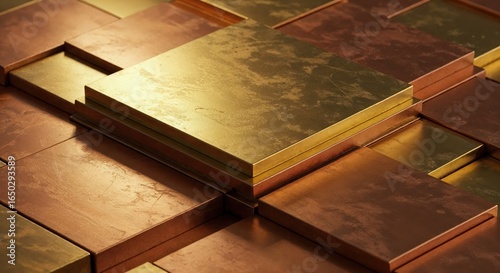 Golden Cubes Abstract: A close-up showcases an abstract arrangement of meticulously crafted golden and bronze cubes, providing an eye-catching display of modern elegance.