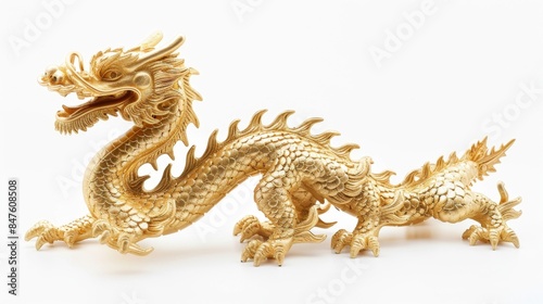 golden dragon statue symbolizing power representing wealth isolated on white background