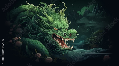 Golden dragon with green background, Chinese suspicious symbol. Neural network ai generated art