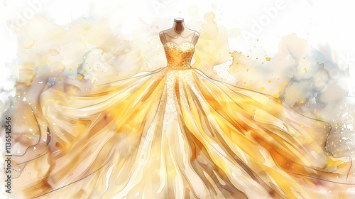 Golden Dream: Watercolor Gown Illustration