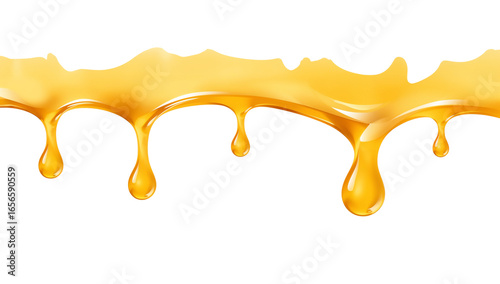 Golden dripping liquid, flowing with viscosity, vector illustration on transparent isolated