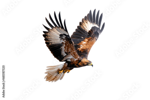 Golden Eagle in Flight: Witness the majestic flight of a golden eagle, its powerful wings spread against the sky, embodying freedom and soaring through the atmosphere.