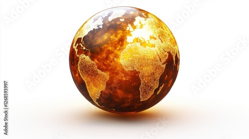Golden Earth Globe, Hot, Global Warming, Isolated, White Background
