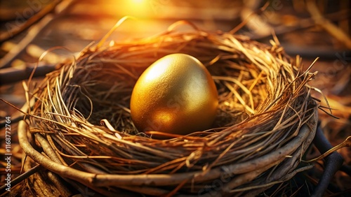 Golden Egg in Bird Nest - Nature's Treasure - Stock Photo