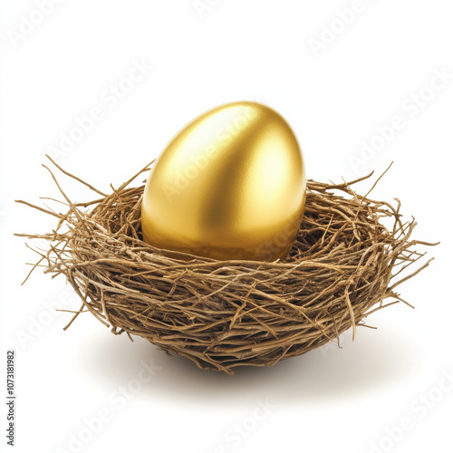 Golden Egg Nestled in a Bird's Nest, Symbolizing Wealth, Prosperity, and Financial Security