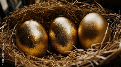 Golden Eggs Nest Wealth Luxury Success Fortune Abundance Hay Rich Life Shiny Straw Image