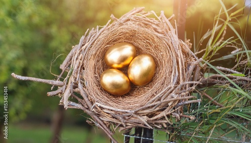 Golden Eggs Nestled in a Bird's Nest Symbolizing Wealth and New Beginnings