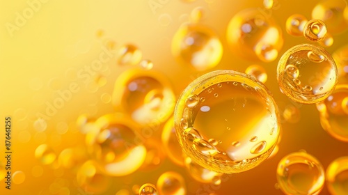Golden Elegance Luxurious Spherical Bubbles Floating in Radiant Yellow Space Abstract Stock Image with Vibrant Depth and Opulence
