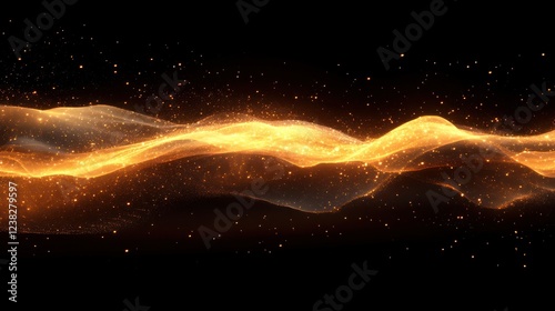 Golden energy wave flowing dark space, particle background, digital art