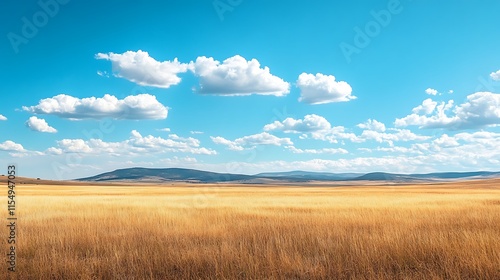 Golden Field Under a Clear Sky. Vast Landscape, Summer Day.