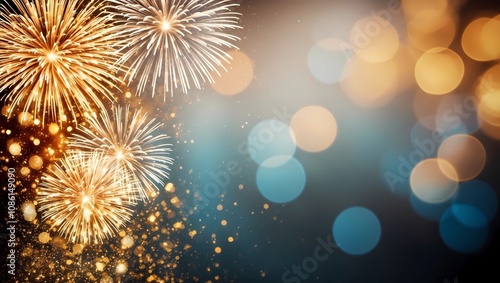 Golden fireworks and sparkling bokeh on dark background for festive celebrations